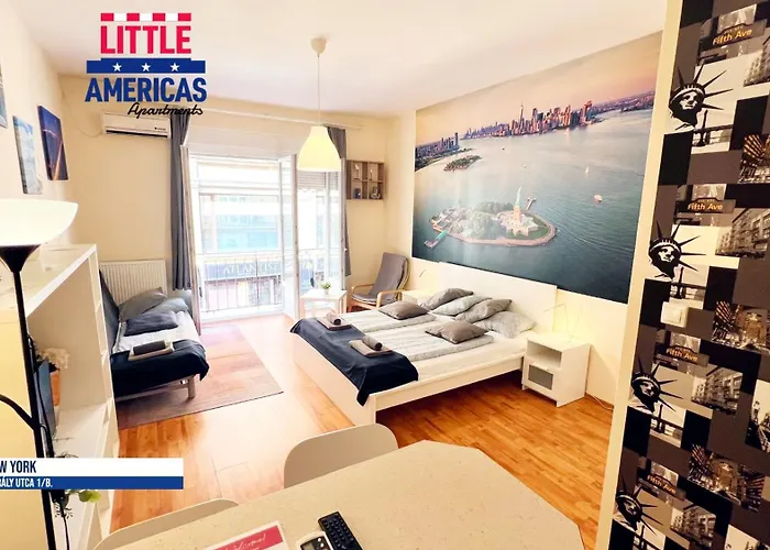 El Little New York West Side Apartments está amueblado con una cocina bien equipada para la comodidad de los huéspedes. El Little New York West Side Apartments está a tan solo 350 metros de la parada de autobús Akacfa utca y cerca de la estación de metro Bajcsy-Zsilinszky út. El apartamento tiene una terraza.